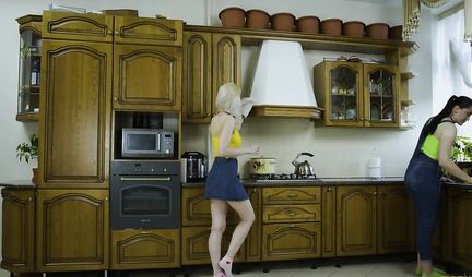 Русские лесбиянки на кухне полируют друг другу отверстия языками и пальчиками