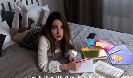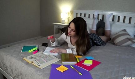 Русской телочке пришлось отвлечься от учебы, чтобы трахнуться