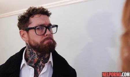 Рыжая девушка встала раком для секса с татуированным очкариком