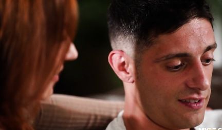 Рыжая милфа засветила аппетитную киску перед молодым парнем