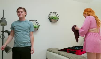 Рыжеволосая мачеха нагло полезла в штаны к своему пасынку