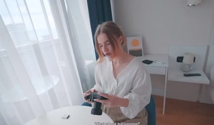 Диана Райдер еще та барыга как ни крути. Так в 00:34 девушка приходит к чуваку, у которого собирается купить фотик, который ей позарез нужен. Вот только сумма в пятьсот баксов никак не является той, на которую рассчитывает рыжая красавица. Поэтому, сходив в туалет в гостях, девушка предстает перед пареньком натурально в ниглиже и предлагает тому отдать фотоаппарат за четыреста баксов плюс минет. Совсем скоро чувак соглашается и девушка сосет хрен, а в 08:11 хлопец уже вовсю дрючит рыжуху в любимой позиции раком, в итоге кончая от шаловливых ручек покупательницы в 17:29. А Дианка, однако, умеет вести дела!...