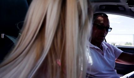 Седой мужчина в машине соблазнила молодую блондинку и привез ее к себе домой для секса