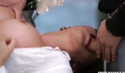 Секретарша с большими дойками удовлетворяет большие члены
