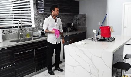 Ну вот в чем Смолу Хэндсу повезло, так это в том что она нашел в качестве домработницы очаровательную губастенькую Хермозу. Оказалось что длинноногая красотка не только классно убирает квартиру, но и сосет половой член и даже трахается. Все это татуированный товарищ испытал на собственном пенисе. Только вот после первого же секса - роли у парочки поменялись и теперь красавчик вкалывает на кухне, а его экс-домработница ходит на работу и не факт что не трахается там с разными мужиками. Вот что бывает когда натянешь вагину на глаза!