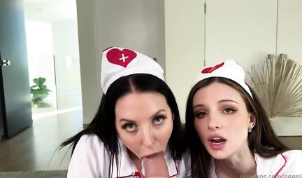Медицина это такая отрасль, которая спасает жизнь людей и делает их счастливыми. Вот и эти две симпатичные медсестры, помогают пациенту, пришедшему к ним на прием и жалующемуся на то что его член стоит и даже не думает опадать. Ну может для кого-то это и проблема, но для медсестер, которым просто нечем заняться на дежурстве это отличный способ скоротать время, занимаясь сексом и попутно помогая большому человеку. Ну что бы мы делали без таких затейниц?!