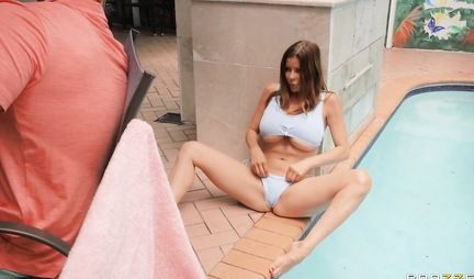 ДжиМэк вполне себе может угостить любимую девушку в бассейне, куда они пришли в гости к другу. Ну да кто же знал, что под бухом она теряет нормы приличия и готова трахаться даже на людях. Дабы немножко успокоить горячий нрав грудастой нимфоманки, лысый здоровяк прыгает в бассейн, где и жарит красавицу. Хорошо что этого никто, кроме нас не видит - иначе тоже не удержались бы и передернули затвор.