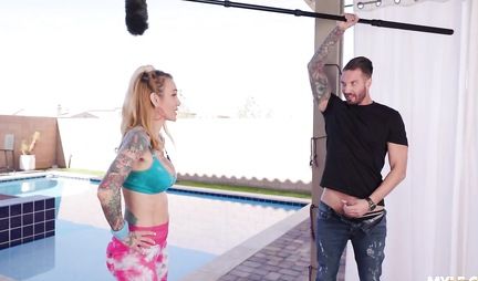 Сара Джесси хочет быть всегда красивой и в этом грудастой дамочке очень помогает фитнес, которым она занимается три раза в неделю, а иногда и чаще. Но сегодня в спортзал приходит звукорежиссер по каким-то своим делам. Увидев красивую дамочку он не может оторвать от нее глаз и почти сразу начинает дрочить. Ну при таком раскладе не трахнуться с поклонником - настоящее преступление. Ну так Сара Джесси и трахается.