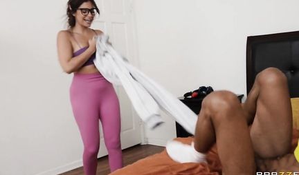 Черный парень вовсю шарахается с аппетитной подругой у нее дома, когда в гости приходит тренерша по фитнесу Вайлетт Старр. Похоже, она профессионалка, потому что умудряется во время занятий, еще и соблазнить молодчика на палец в жопе, а после и на большой черный член. Ну а пока подружка ходит на дальняк, чувак успевает не только отжарить в очко Вайлет, так еще и кончить туда же...