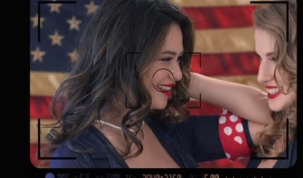 Ну хорошо у нас мужикам на 23 февраля. Все женщины их слушаются и поздравляют, а они бухают и трахаются с кем попало. А вот у них в Америке на день памяти совсем другая картина. Две горячие подружки в распутной синей форме зовут парня одной из девиц, чтобы тот возился со знаменем, а после фоткал девах во время взаимных ласк. Но вскоре он уже присоединяется к шалуньям и делает то, что у мужчин получается лучше всего - трахает красавиц!
