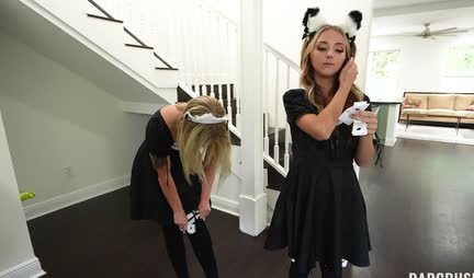 Две подружки частенько после занятий в колледже уединяются в доме одной из них и понемногу занимаются лесбийским сексом. Вот и сегодня девушки действуют по старой схеме, но оказывается что дома спит отчим, который ловит развратниц за их сладким занятием и в наказание заставляет девушек убираться по дому, а после продолжать шалости, но уже в его присутствии... В итоге те насладились не только однополой любовью друг с другом, но и вполне гетеросексуальной, если учитывать мужской член отчима одной из любовниц!