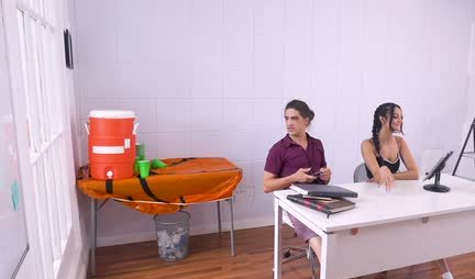 Лиза Ибарра так хорошо выглядит по причине того что любит не только спорт, но и заниматься сексом. Сегодня после дневной тренировки по гимнастике, она идет к тренеру и строчит ему обалденный минет в кабинете. Тот делает ответное куни и в итоге парочка шпилится на столе. А вот тут-то брюнетке и пригождается ее несравненная гибкость. Ну скорее он не тренер, а физрук, который есть в каждом колледже. Все физруки одинаковы, даже в американских колледжах и российских ПТУ, главное наклоны!