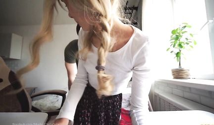 Ну, если вы думаете что сочная русская блондинка готовится к сессии или учит дистанционно испанский язык, так это нет. Просто ей очень нравится парень из соседской группы и когда в животе у девушки порхают бабочки, она приглашает товарища чтобы тот починил комп, а взамен поимел ее писю ее в качестве оплаты. Ну мы так и знали что деньги тратить она не хочет, а крутой секс она хочет получить на халяву. Ну так во всем мире сначала трахаются с компьютером, а потом уже с девушками...