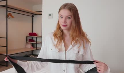 Аппетитная женушка Диана Райдер реально страдает от недостатка внимания со стороны любимого мужа. Вот и сегодня девушка заказывает себе эротический прикид, завязывает глаза и ждет супруга на предмет исполнения супружеского долга. В это время ему звонят и он за разговорами уходит в другую комнату. Далее в квартиру приходит сосед и, пользуясь моментом, активно пользует красивую рыжую женушку. Ну а муженек вообще ни о чем не догадывается, даже когда видит сперму из жениной письки.