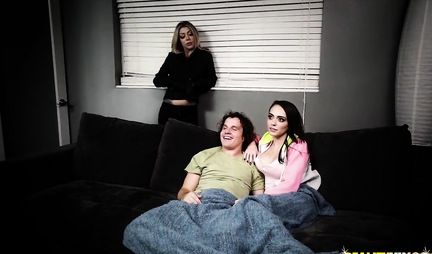 Ну и как быть пареньку в коммуналке,если помимо любимой жены на его член претендует слегка потрепанная, но все еще сексапильная соседка, которую нельзя остановить никакими трудностями?! Да что там говорит - шпилить двух дам одновременно не так просто, если только не свести их вместе на одной кровати. В итоге нагрузка на член меньше в разы и дай Бог чтобы сластолюбивые леди не залюбили паренька до смерти.