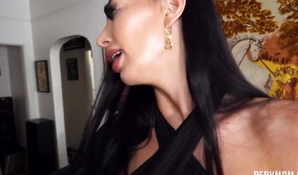 Татуированная брюнетка с большими дойками трахается с парнем от первого лица