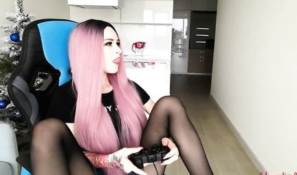 Играть в Мортал Комбат безусловно весьма похвальное занятие для симпатичной девушки с красными волосами, но все равно это не ее. Гораздо больше девице нравится, когда любимый друг возвращается с работы и заставляет ту раздвигать булки и подставлять сдадкую дырку для бурного и неудержимого секса. А вот это правильно - пусть лучше девица будет зависима от мужского конца, чем станет игроманкой.