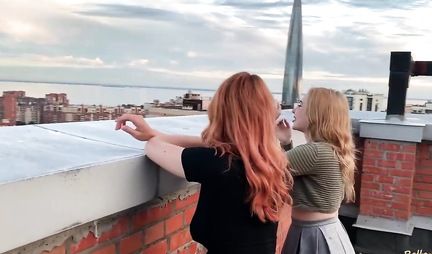 Татуированная лесбиянка и ее подружка устроили русское порно на крыше дома