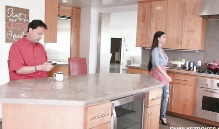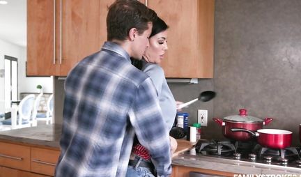 Пасынок давно посматривает на довольно таки громадные буфера и шикарную попу мачехи Мелиссы Лин и в один прекрасный момент, когда пахан полностью занят телефоном, молодчик зажимает бабенку с явным намерением отодрать. Та тоже не против горячего секса, но предпочитает делать это немного позже, уединившись в спальне. Ну а как иначе завоевать любовь и доверие парня - только через постель!