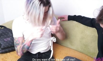 Татуированная русская блондинка раздвигает ноги для секса с любовником