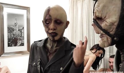 Татуированные красавицы и их друзья решили насладиться оргией в одной комнате