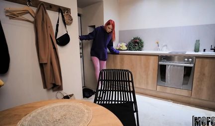 Как бы банально это ни звучало, но девушка или любит трахаться в попу, или нет. Ну так товарищ симпатичной рыжей крошки уже второй месяц живет вместе с девицей, нимало не зная сексуальные предпочтения зазнобы. Решив подрбнее изучить любимую с тыла, тот дожидается когда сожительница приходит домой и рвет на ней лосины, вставляя конец в узкую анальную дырку девахи. Может кому-то и грубо, а девице весьма по кайфу!