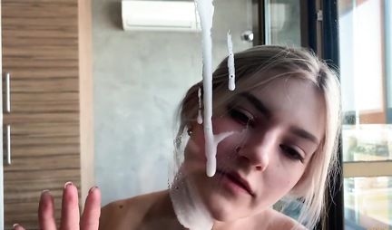 У русской девушки после секса вытекает густая сперма из розовой щелочки