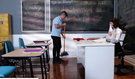 Довольно таки наивная учительница английского языка льстит себя напрасной надеждой что этот молодой студент возьмется за ум и будет учить правила грамматики и прочие заумности. Но, оказывается, чувака больше волнуют выпуклости довольно таки привлекательной наставницы и будучи далеко не самой что не на есть железной леди, милашка охотно отвечает соблазнителю, делая минет и трахаясь прямо в учебной аудитории.