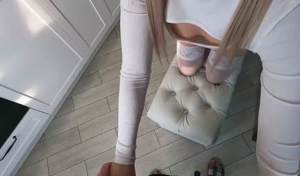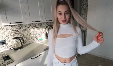 Уговорил русскую подругу попробовать сладкий член на кухне