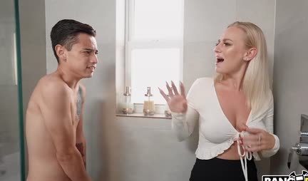 Паренек давно засматривается на свою сивую мачеху, а точнее на ее большие груди. Желая сделать так, чтобы она обнажила их хотя бы в душевой, он делает так чтобы она намочила блузку, а после сделала минет и продолжила секс с любимым пасынком в постели. Ну а что делать симпатичной Элане Буннц если постоянного мужчины у нее на данный момент нет?!