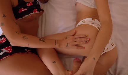 Две сочные соседки по общаге лежат на кровати голышом, даже не закрывая дверь. Решив зайти в гости, я шлепаю подруг по задицам и вручную мну их симпатичные булочки. В ответ те ласкают мой пенис и по их бессовестным глазам я вижу что они совсем не против секса. Затем девицы начинают целоваться, а я загоняю конец между булок одной из них. Потом письки меняются, а в заключение я сливаю сперму на лицо блондинки и той это определенно нравится.