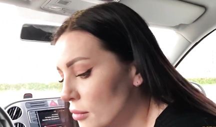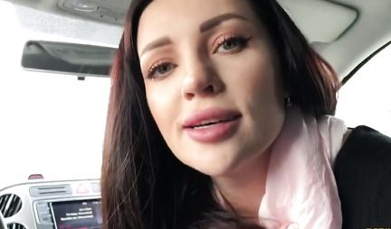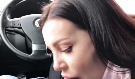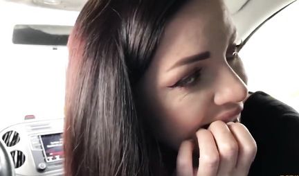 В машине брюнетка открыла ротик и делает минет другу, принимая его сперму