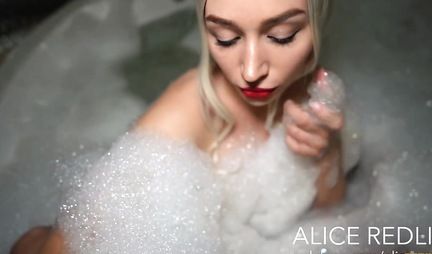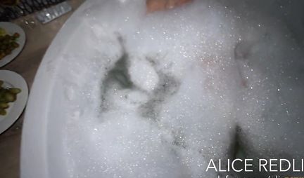 В ванной гламурная красотка выпила вина и сделала нежный горловой минет
