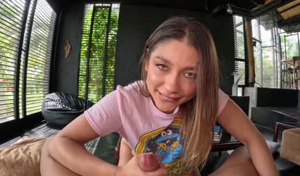 В видео от первого лица девица отлично дрочит парню член