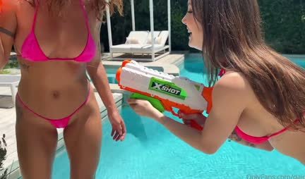 Вообще эти симпатичные подружки вполне себе мирные, но иногда определенно не прочь пошалить. Так зависая на бассейне девушки берут в руки водяные пистолеты и ведут бой по всем правилам военного искусства. Впрочем это им очень скоро надоедает и тогда прелестницы начинают бороться друг с другом на лежанке, подлизывая писи и мастурбируя сладкие вагинки.