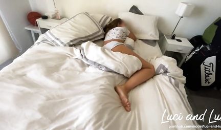 Соседка из общаги учится во вторую смену, а потому натурально никак не может выспаться. Вот и сегодня она уже в десять часов давит на массу и делает это как профессиональный лежебока. Хлопец из числа соседей видит это дело и потихоньку навещает спящую девушку, чтобы подрочить ей письку втихаря и как следует трахнуть, когда она проснется. Ну у парочки это уже давняя традиция напрямую граничащая с ролевыми играми.